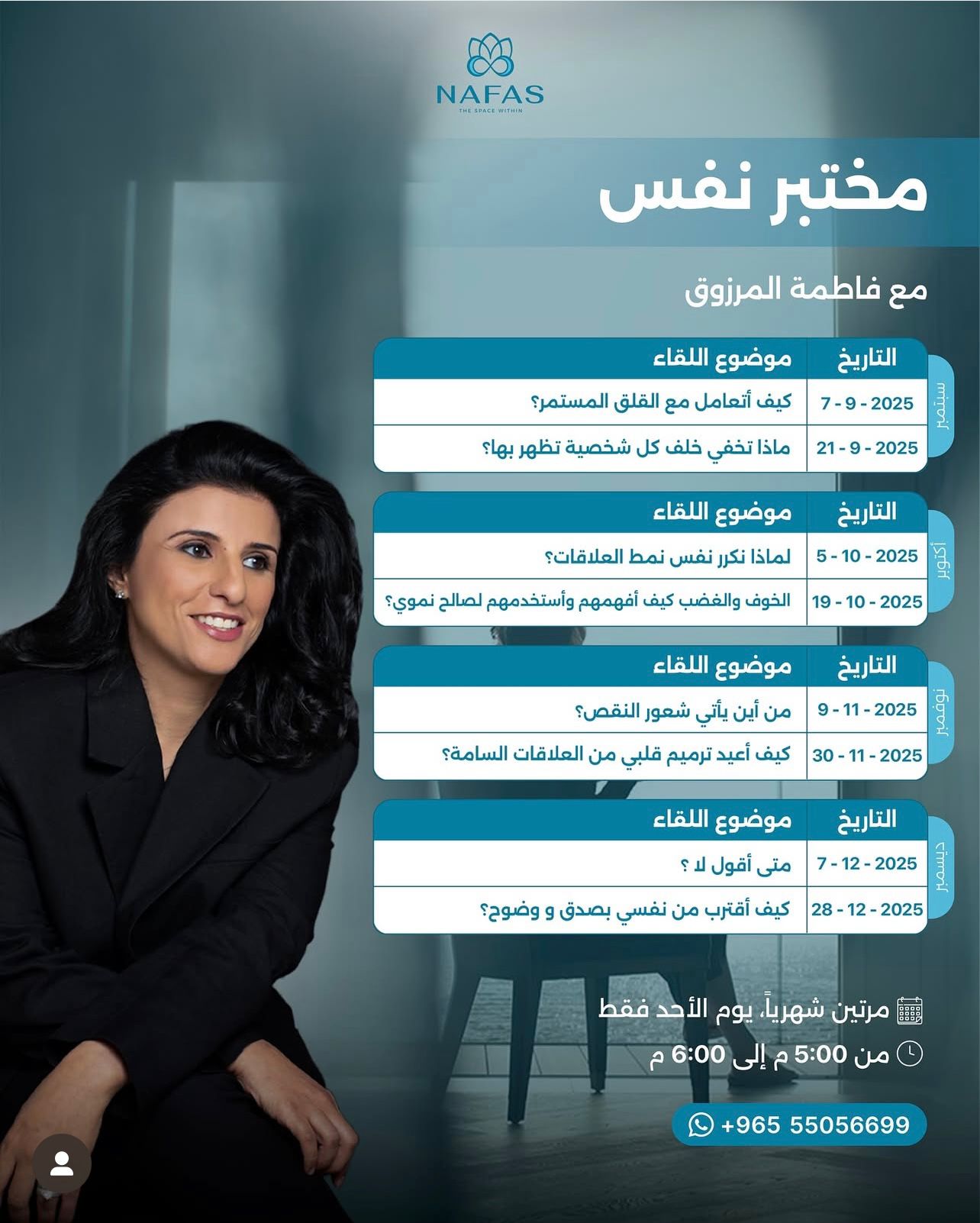 هو برنامج متخصص يقدم جلسات ثرية مع الاخصائية فاطمة المرزوق
